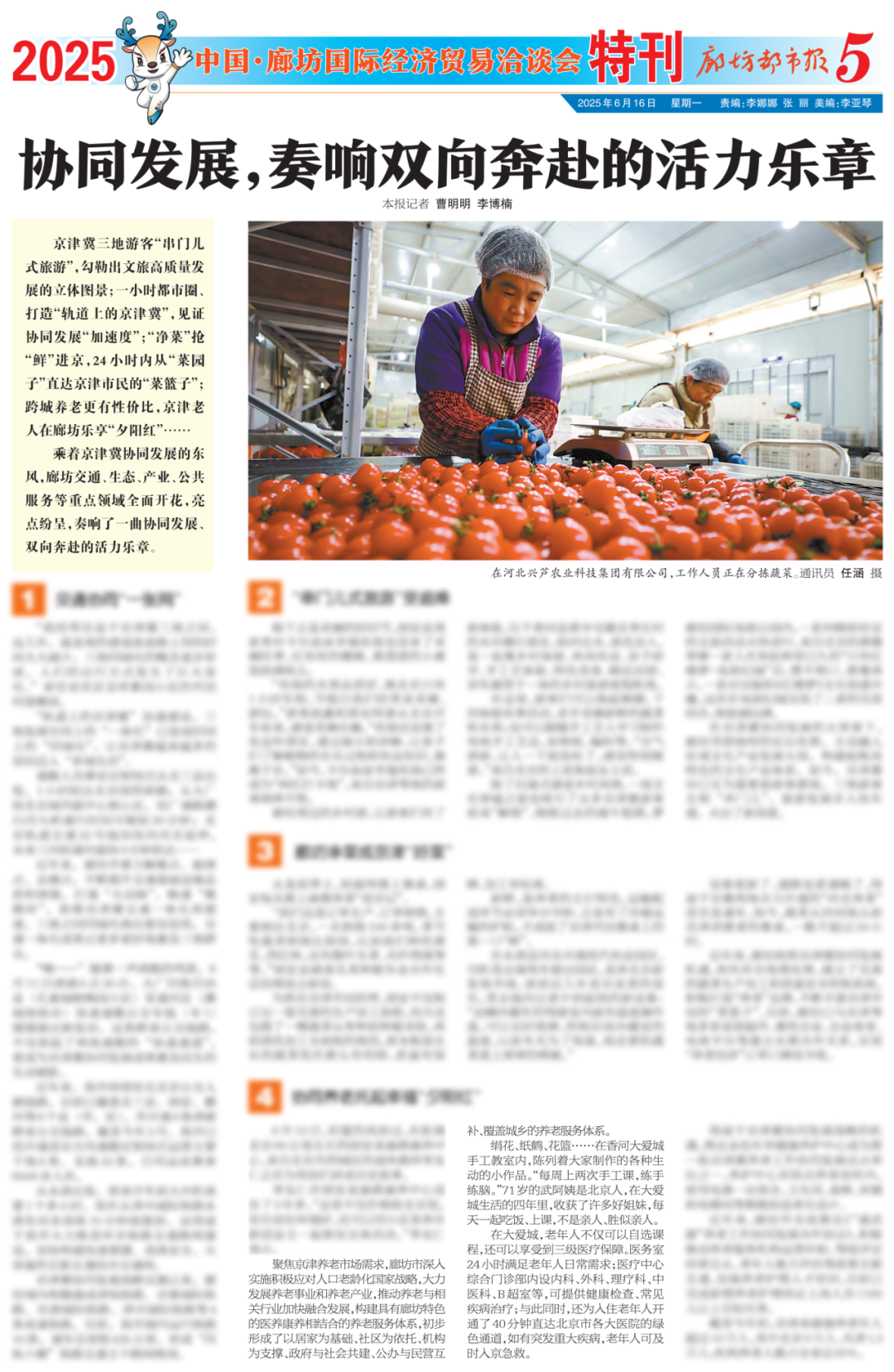 截至今年初,京津来廊康养老年人超过10万人,其中北京9万人、天津1.3万人;机构养老人数占全省近60%。